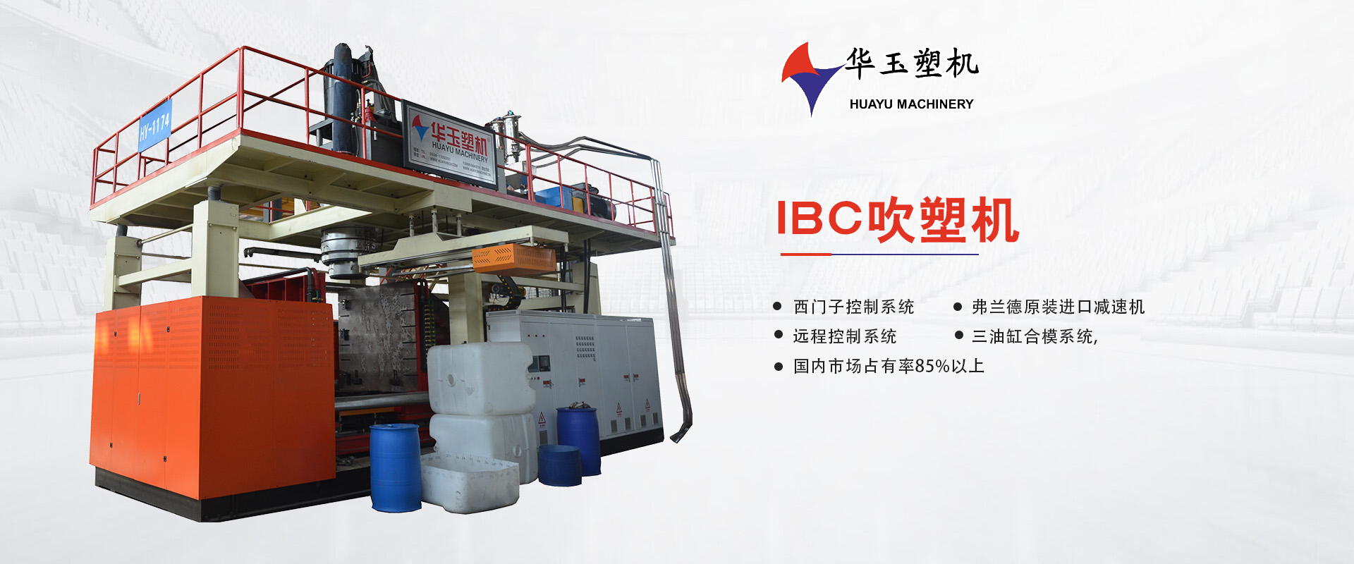 濰坊市華玉塑料機(jī)械有限公司創(chuàng)辦于貳零零貳年,是超大型全自動(dòng)中空吹塑設(shè)備專業(yè)生產(chǎn)廠家。公司融合國內(nèi)外先進(jìn)技術(shù)和理念,專業(yè)設(shè)計(jì)、生產(chǎn)、銷售一層到十層的大型全自動(dòng)中空成型機(jī)組。我公司生產(chǎn)的各型號(hào)吹塑機(jī)可生產(chǎn)50升到30,000升的各類塑料水桶,噸桶、雙環(huán)桶、水馬、路錐、隔離墻托盤、桌板、浮筒、皮劃艇、工具箱包等中空制品。優(yōu)良的品質(zhì)、穩(wěn)定的性能、優(yōu)越的性價(jià)比使公司產(chǎn)品不僅暢銷國內(nèi)市場,并出口到亞洲、東南亞、中東、歐洲、北美、南美、非洲等80多個(gè)國家和地區(qū),深受客戶的好評...